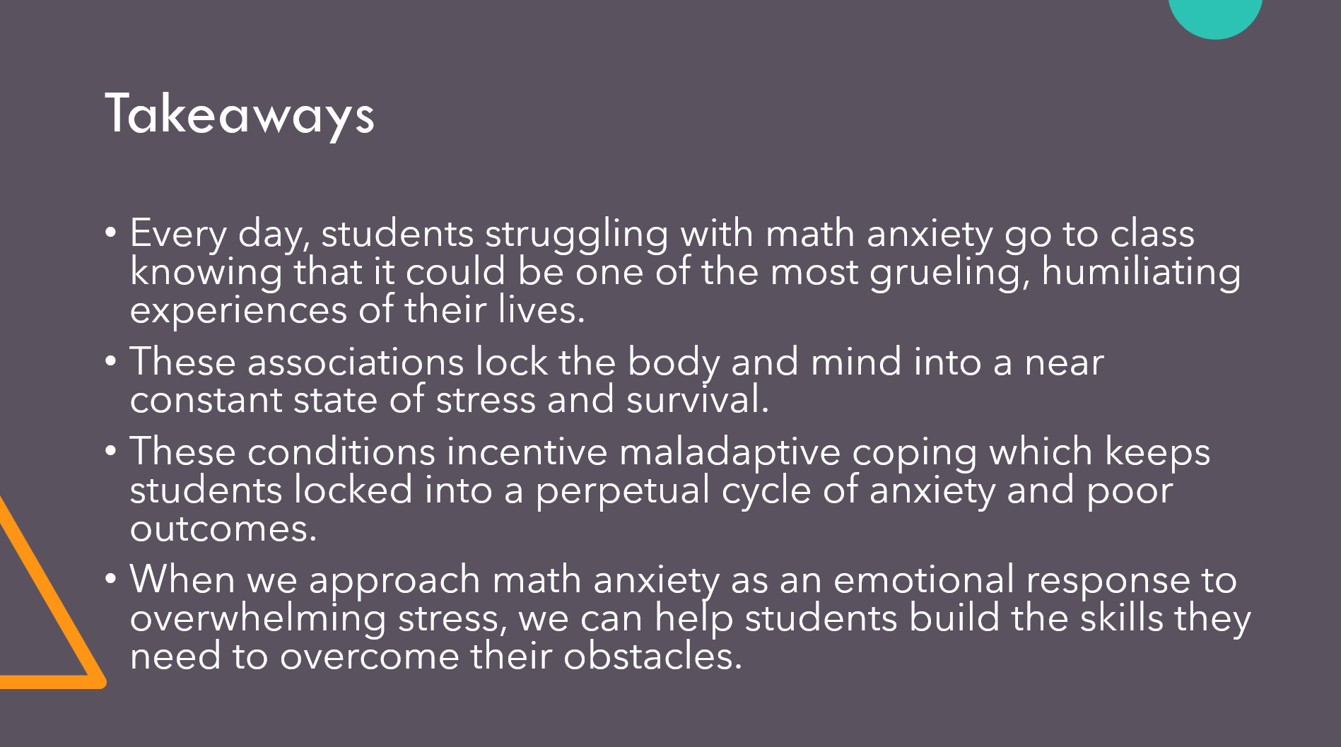 This is the PowerPoint that accompanies my article "An Understanding of Math Anxiety: How Emotional Realities Affect Student Learning". The presentation is available for free download below.